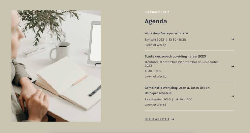 De nieuwe huisstijl moet uiteraard aansluiten bij de nieuwe website. Naast het visuele gedeelte willen we ook op technisch vlak de website van een update voorzien. De Google regels zijn hierbij onze leidraad, waarbij we natuurlijk extra goed kijken naar de laatste major update van Google in de vorm van de Web Core Vitals. In tegenstelling tot de oude website, gaat deze website veel meer beeldmateriaal bevatten om de sfeer en beleving mee te geven voor mogelijk cursisten. De website kan de bezoekers en geïnteresseerden makkelijk van informatie voorzien, zodat ze aangespoord worden om een opleiding te volgen.