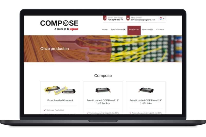 Compose is een informatieve website waarbij je als nieuwe bezoeker en als huidige klant wordt bediend. Het is bijvoorbeeld mogelijk om datasheets van de producten die zij aanbieden, rechtstreeks van de website te downloaden. De website is beschikbaar in 3 talen, omdat ze ook veel internationale klanten hebben.